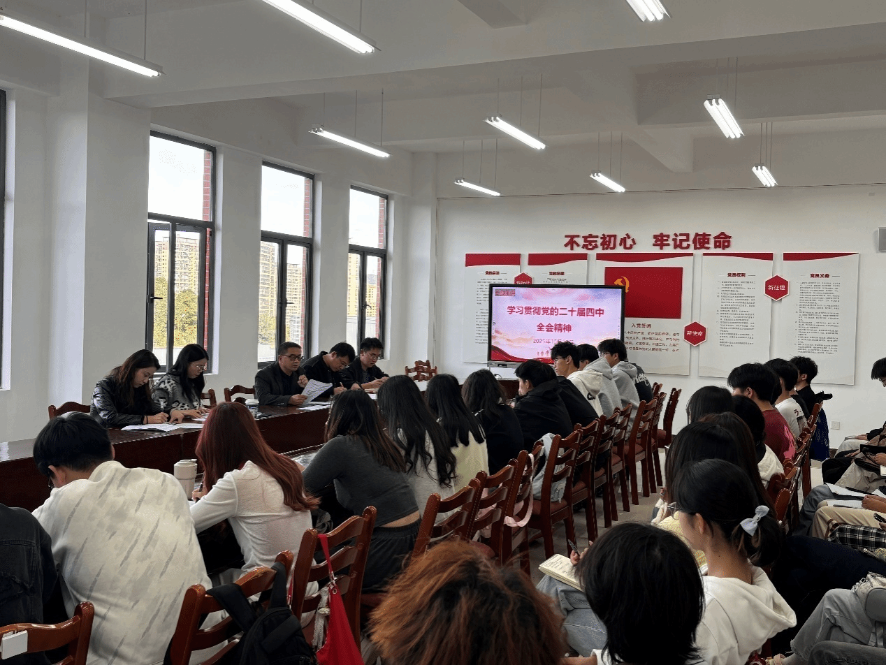 会议伊始,周玉国向新加入学生组织的同学们表示热烈欢迎并围绕学习贯彻党的二十届四中全会精神讲授专题团课。他强调要深入学习领会党的二十届四中全会精神,扎实推进团员青年思想政治引领和价值观塑造工作,引导广大同学坚定理想信念,坚定不移听党话、跟党走。