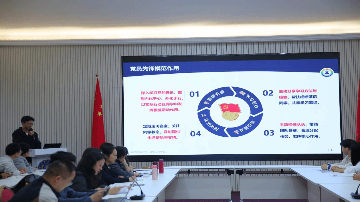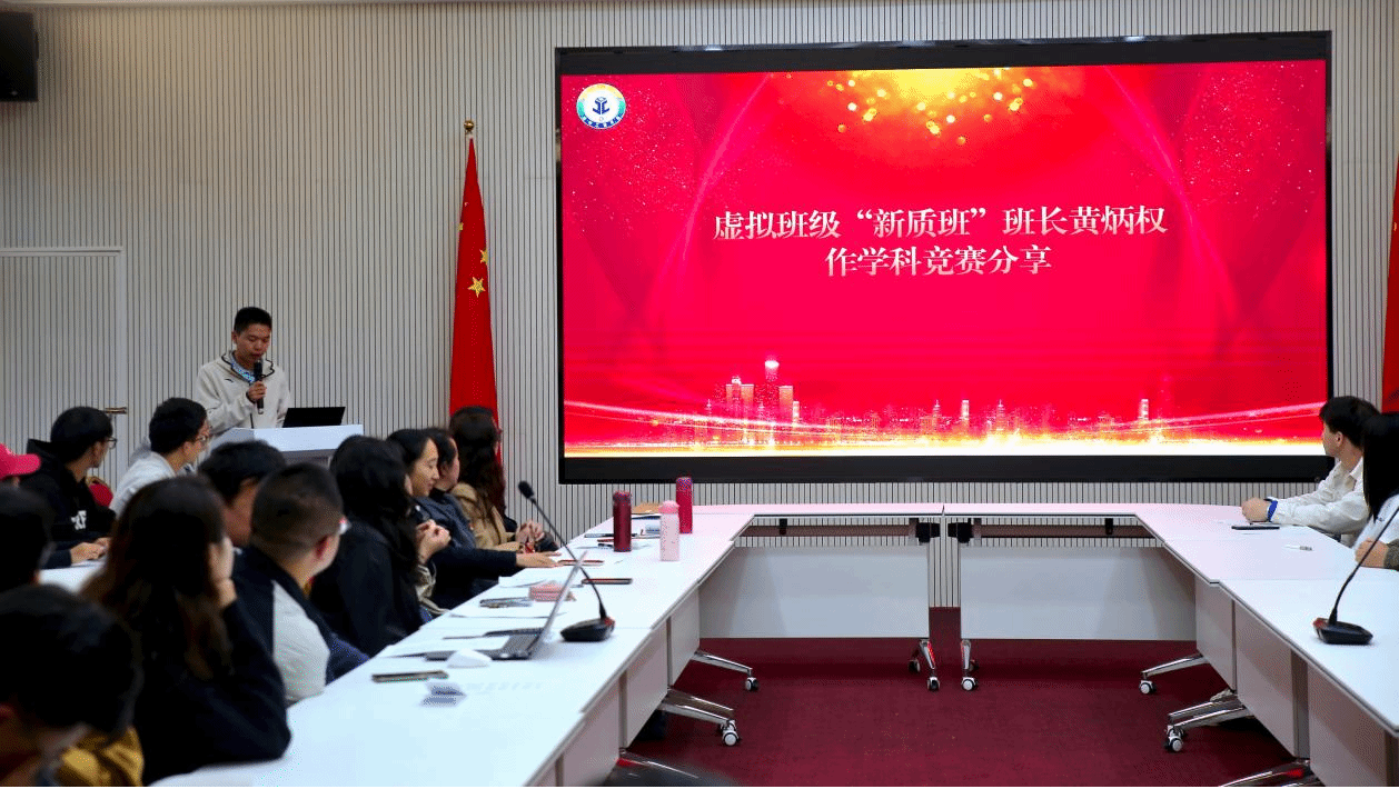 在经验分享环节,优秀党员学生代表李鑫龙结合自身学习成长经历,分享了高效学习方法和时间管理心得。虚拟班级“新质班”学生代表黄炳权则围绕学科竞赛参与过程,讲述了备赛经验与创新实践体会,展现了机电学子锐意进取的精神风貌。